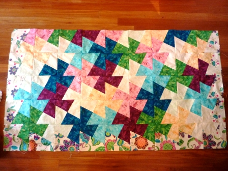 Ja hoor, echt waar, mijn dierbare Bernientje heeft er een zusje bij. Een Husqvarna. En geen gewone, nee, ik heb eindelijk een borduurmachine. Via marktplaats maar dat mag de pret niet drukken. Wat is dit leuk. Er gaat een hele nieuwe wereld voor me open. Tsja en een wereld vraagt wel de nodige tijd om te ontdekken. Maar een paar proefjes zal ik toch al laten zien. Heb ik tenminste nog iets om te showen. Want ik ben alleen nog maar druk met het quilten van de Twisted Pinwheels. Gelukkig is het einde in zicht. Want echt hoor, quilten niet niet echt zo mijn ding.